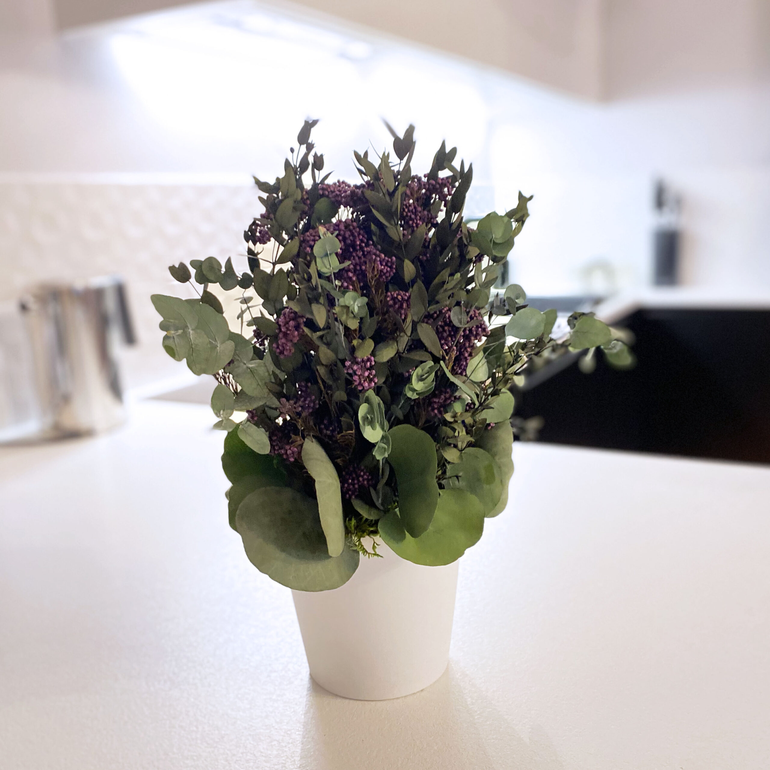 Säilytetyt riisikukat eukalyptuslehdillä.