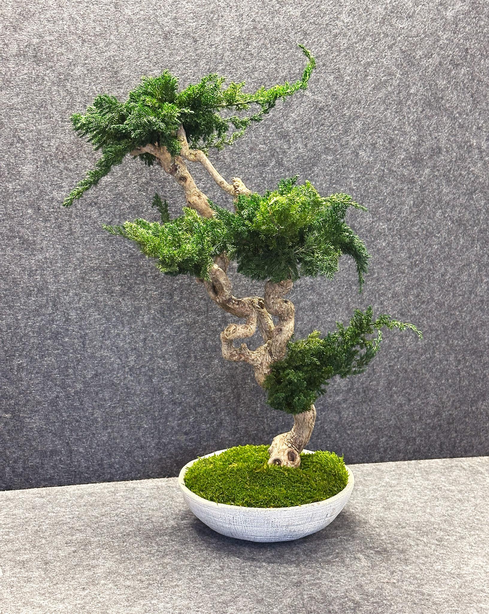 See säilitatud bonsai toob igasse ruumi ajatu looduse puudutuse. Erinevalt traditsioonilisest bonsaist ei vaja see kastmist ega erilist hooldust. Tänu ainulaadsele säilitamisprotsessile säilitab bonsai oma loomuliku ilu ja värvi ilma päikesevalguse ja hoolduseta. See sobib ideaalselt rahuliku ja harmoonilise atmosfääri loomiseks nii kodus kui ka kontoris, lisades interjöörile elegantse ja rahustava aktsendi, mis püsib kaunis aastaringselt.